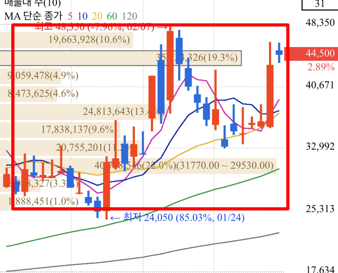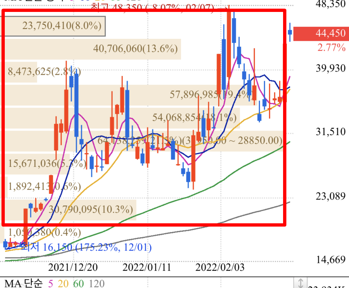 저는 개인적으로 매물대를 많이 보는 편입니다. 주식차트를 보는 방법으로는 여러가지 방법들이 존재합니다. 그중 많은 분들이 보는 것 중 하나가 바로 매물대입니다.