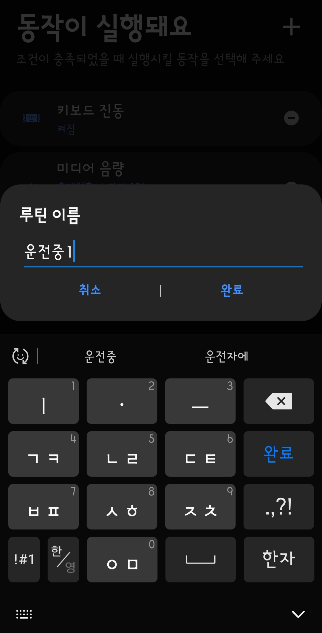 그럼 이렇게 빅스비 루틴 이름을 정하시면 끝이 나게 됩니다. 아주 간단하죠? 이게 편할까?라고 처음에는 생각하실 수 있는데 한번 사용해보시면 정말 편합니다. 예들 들면 어떠한 미팅에서 휴대폰을 무음 또는 진동으로 해놓고 사무실에 갔는데 진동이 되어 있거나 무음으로 되어 있어 업무 전화를 못 받을 때가 있습니다. 이럴 때 빅스비 루틴이 설정되어 있다면 사무실에 왔을 때 자동으로 벨소리로 바뀌기 때문에 상당히 편리하게 사용할 수 있습니다.