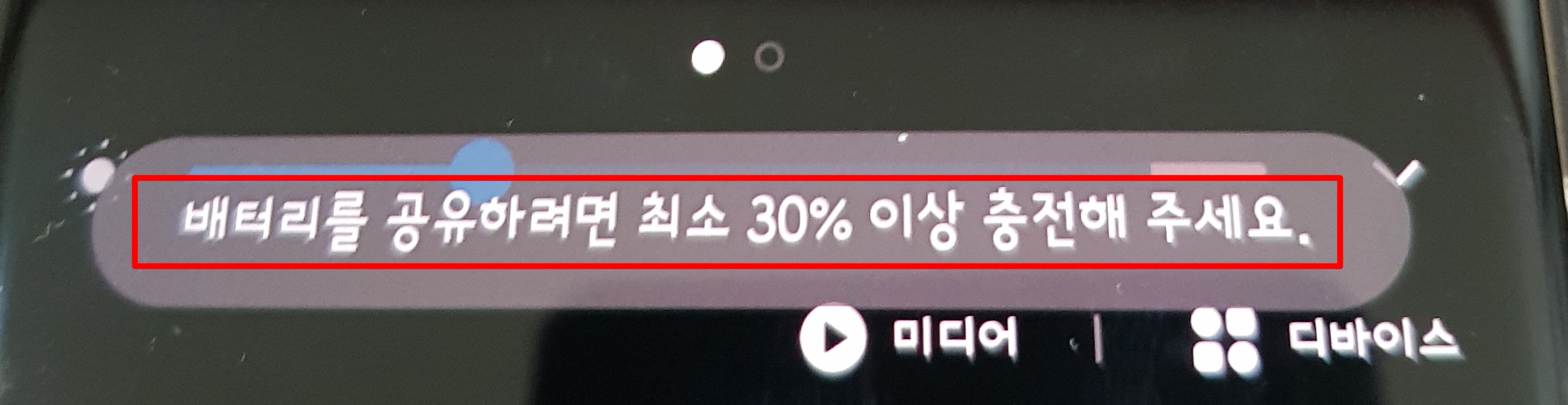 그런데 중요한 점이 있습니다. 배터리를 공유받을 휴대폰에도 30% 이상의 배터리가 있어야지만 무선 배터리 공유가 가능하오니 참고 바라겠습니다.