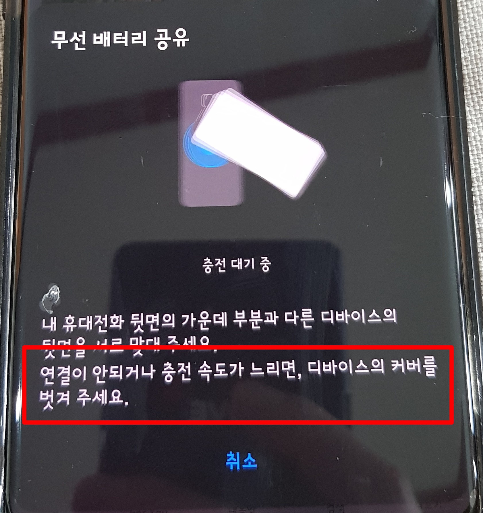 그런데 중요한 점이 있습니다. 배터리를 공유받을 휴대폰에도 30% 이상의 배터리가 있어야지만 무선 배터리 공유가 가능하오니 참고 바라겠습니다.