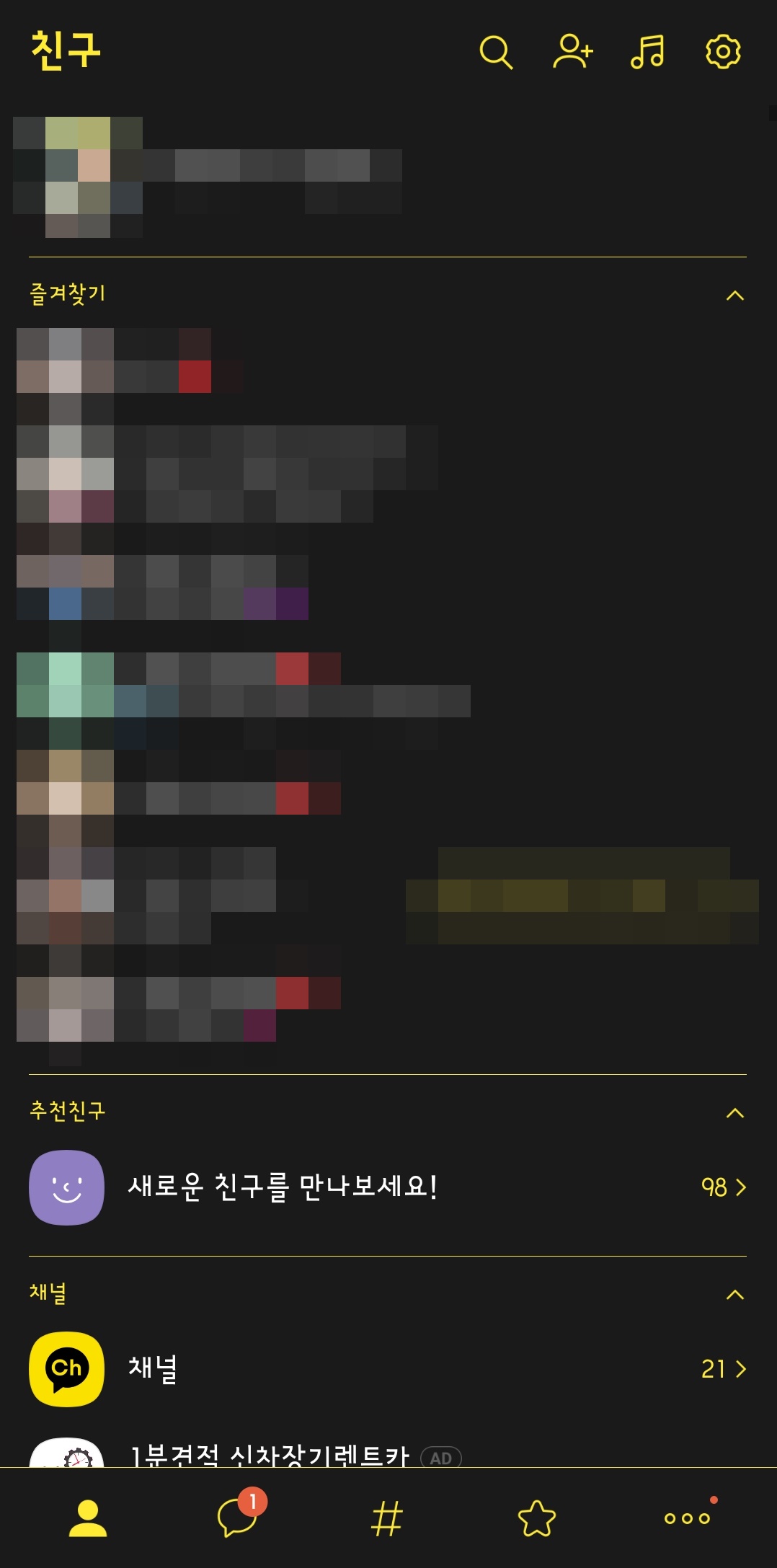 카카오톡 메인화면에서 톱니바퀴 모양 설정을 눌러주시면 친구 관리 메뉴가 나오게 됩니다. 친구 관리를 눌러 진입해주시면 되겠습니다.