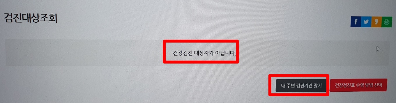 앗 저는 건강검진 대상자가 아닙니다. 여러분들도 조회를 해보시고 본인이 건강검진 대상자가 맞다면 꼭 건강검진을 받아 보시기 바라겠습니다. 정말 건강이 최고입니다. 본인 건강은 본인이 챙겨야 합니다. 주기적인 건강검진으로 본인의 건강을 챙겨주시기 바라겠습니다. 본인이 건강검진 대상자가 맞다면 내 주변 검진기관 찾기를 눌러 본인과 가까운 병원을 찾아 검사를 진행하시면 되겠습니다. 하지만 병원마다 금액이 천차만별이기 때문에 꼭 가기 전 사전조사를 해서 저렴하게 가능한 곳을 찾아보시고 가주시면 되겠습니다.