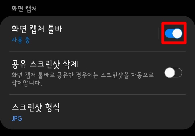 거기에서 화면 캡처 메뉴가 있고, 화면 캡처 툴바 메뉴가 있는데 체크 눌러 주시면 되겠습니다. 이렇게 화면 캡처 툴바가 사용 중이라고 나오게 되었다면 이제 본인이 캡처하고 싶은 화면으로 이동을 합니다.