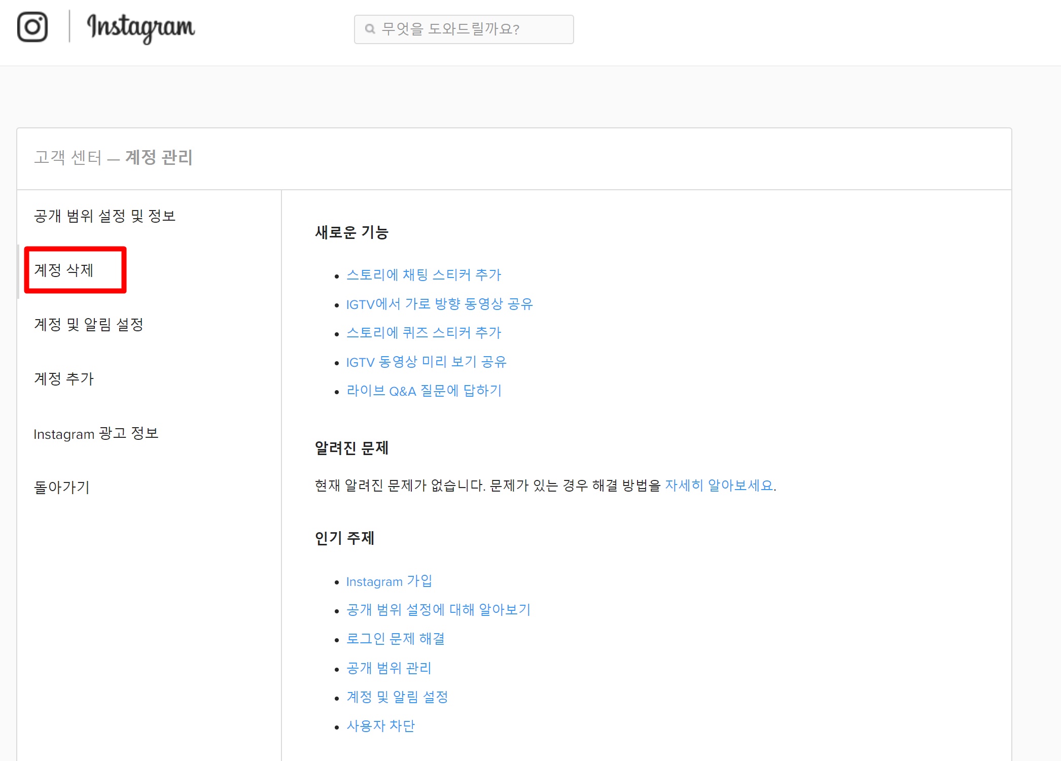 프로필 편집으로 들어가서 제일 아래쪽 좌측을 보면 도움말이 있습니다. 도움말을 클릭해서 들어 가주시면 되겠습니다.