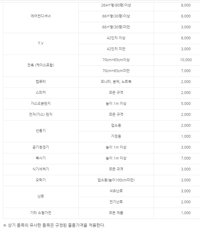 슈퍼마켓 등 대형폐기물 스티커 판매소에서 대형폐기물 스티커를 구입하여서 스티커를 붙여 배출 해주시면 됩니다. 각 폐기물마다 스티커 가격이 다르니 아래 폐기물 스티커 가격 확인해주시면 되겠습니다.