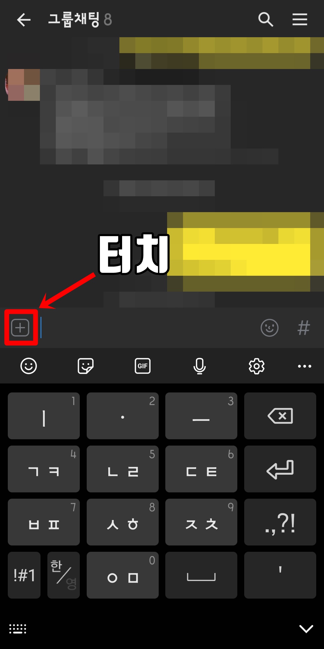 그럼 위 사진을 참고하여 좌측부터 따라 해 주시면 되겠습니다. 먼저 +모양을 눌러 주시면 앨범 카메라 선물하기 등 메뉴들이 나오게 됩니다. 여기서 선물하기를 터치해주세요.