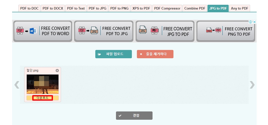 그럼 이렇게 사진이 PDF파일로 변환이 완료가 되었습니다. 그럼 다운로드 버튼을 클릭해서 다운로드해주시면 되겠습니다. 서류 작업 등 제안서 작업등 할 때 유용하게 사용이 될 수 있는 사이트입니다. 꼭 즐겨찾기 해놓으시고 사용해보시면 편합니다. 저도 즐겨찾기에 해놓고 편하게 사용을 하고 있답니다.